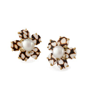 Cone shell Flower Earrings with a south sea Pearl center. Set in 18 karat yellow gold, signed Sorab & Roshi.