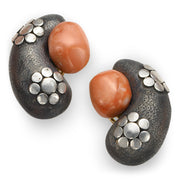 Antique finish sterling Silver & 18 karat gold Cashew Earrings with Coral.