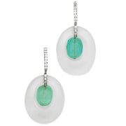 Diamond J hoop Earrings with frosted Crystal dangle with Emerald center. Set in 18 karat white gold, signed Sorab & Roshi.