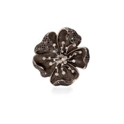Antique finish Sterling Silver Flower Pin with pave black diamonds & white diamonds. Set in 18 karat white gold. Signed Sorab & Roshi.