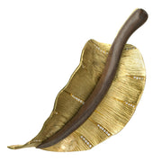 An 18 karat yellow gold matt finish Leaf Pin with diamond accent and Walnut wood Stem, signed Sorab & Roshi.