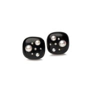 Square cushion Ebony wood Vogue Earrings with Pearl & Diamond spots. Set in 18 karat white gold. Signed Sorab & Roshi.