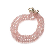 Three strands of nesting faceted Rose Quartz bead necklace with 18 karat white gold double snake clasp. Signed Sorab & Roshi.