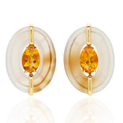 An oval shape Agate Earrings with faceted checkered oval Citrine center & gold tabs. Set in 18 karat yellow gold, signed Sorab & Roshi.