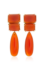 An 18 karat yellow gold double stone Earrings with rectangular cushion Carnelian and detachable carnelian drops. Signed Sorab & Roshi.